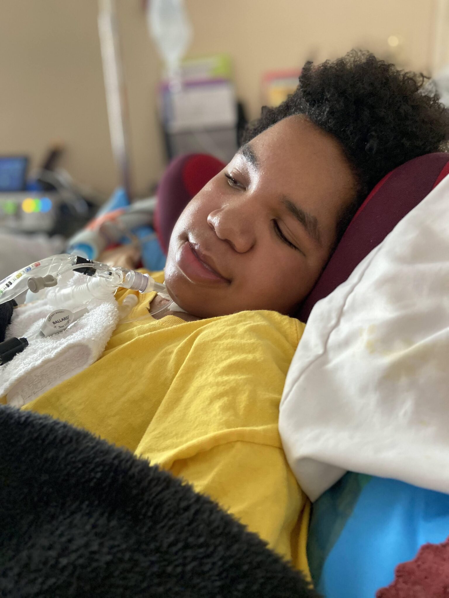 Three brain surgeries, a ventilator, a shunt, a tracheostomy, a G Tube, a diaphragm pacer and 249 days in-patient later we have been home since July 2022. We are doing in-home physical therapy, occupational therapy and speech therapy including using an AAC device and a stander to regain communication, core strength and mobility. It has been a long road for us but we have seen pieces of him return slowly and have hopes it will continue.